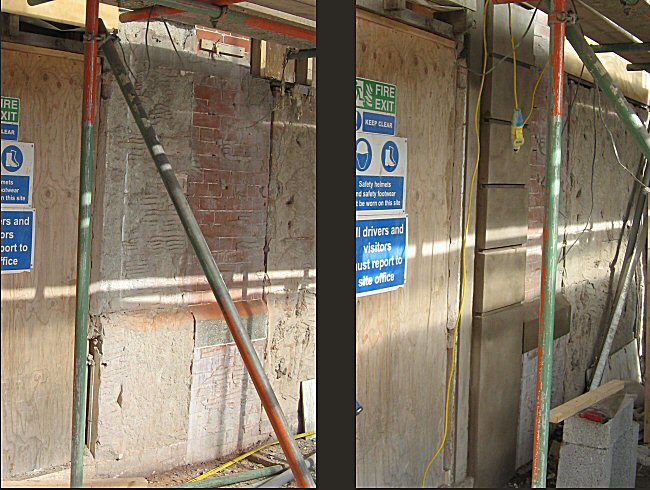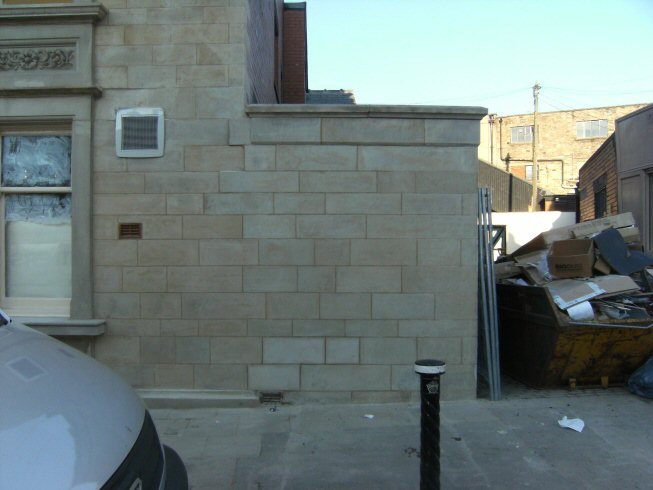 The first site visit was a shock to the system! The full elevation (330 metres!) required all the mortar joints removing using hand tools. Much of the stone and brickwork was unstable or missing and had to be replaced like for like. The building was re-pointed using a mix of hydraulic lime and river washed sand as approved by the conservation officer. All of the works had to be carried out from a mobile tower as fixed scaffold was not permitted in the car park. An added complication was the possible habitation of bats so the project was suspended for a few months whilst a survey was carried out which found bats frequenting the locality but not roosting. As a safeguard we were advised to leave pockets open in some of the stonework. All in all a very interesting and enjoyable project!